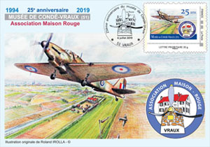 Inauguré officiellement le 16 juillet 1994, le musée du terrain d’aviation de Condé-Vraux présente au public la période, trop peu connue, de la bataille de France. Toute l’histoire de ce terrain d’aviation est présentée dans le contexte des opérations aériennes 1939/1945 en privilégiant la petite histoire régionale avec ses anecdotes, aventures vécues, recherches et retrouvailles. Aujourd’hui le musée s’étend sur 350 m² d’exposition couverte où sont présentés des documents, pièces et moteurs d’avions, mannequins d’aviateurs, la reconstitution d’une pièce d’habitation et d’un logement d’aviateurs anglais ainsi qu’un atelier de l’aviation populaire de 1936. Il est ouvert de juin à fin septembre les samedis et dimanches de 14h00 à 18h30. Entrée libre. Pour tout savoir sur le musée et l'histoire de ce terrain d'aviation, rendez-vous sur le site de l'Association Maison Rouge : www.amrvraux.com Les 25 ans du musée ont été marqués par un bureau philatélique temporaire ouvert les samedi 6 et dimanche 7 juillet de 10h00 à 18h30. Les souvenirs émis à cette occasion sont signés Roland IROLLA et Gérald LEFEVRE. Adresse : 28 rue Basse à VRAUX (51150) |
